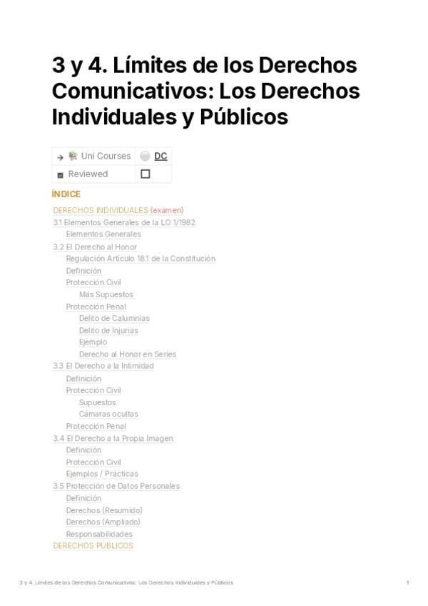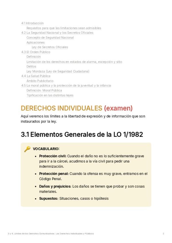 Apuntes sobre los límites individuales y públicos de la información. Cubre la LO 1/1982 (Honor, Intimidad y Propia Imagen) y la protección de datos (RGPD). También incluye límites públicos como la seguridad nacional, los secretos oficiales y la polémica "
