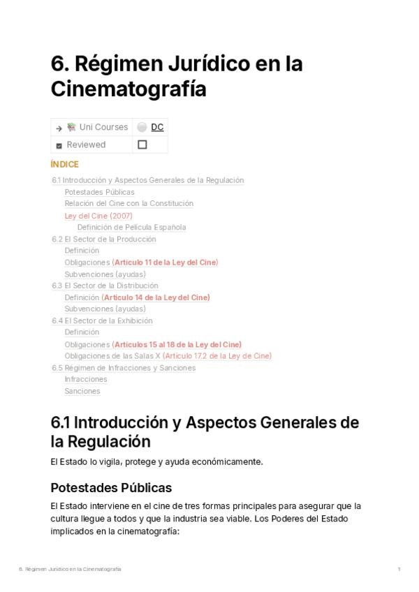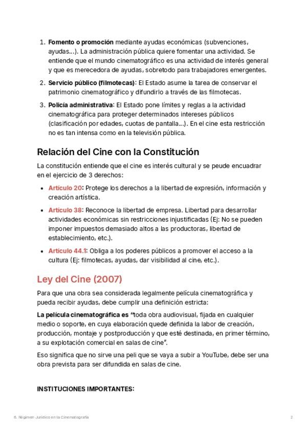Guía sobre la Ley del Cine de 2007. Contiene las definiciones legales de película española , el papel del ICAA y las obligaciones de los sectores de producción, distribución y exhibición. Muy importante para el examen: el resumen de la cuota de pantalla y
