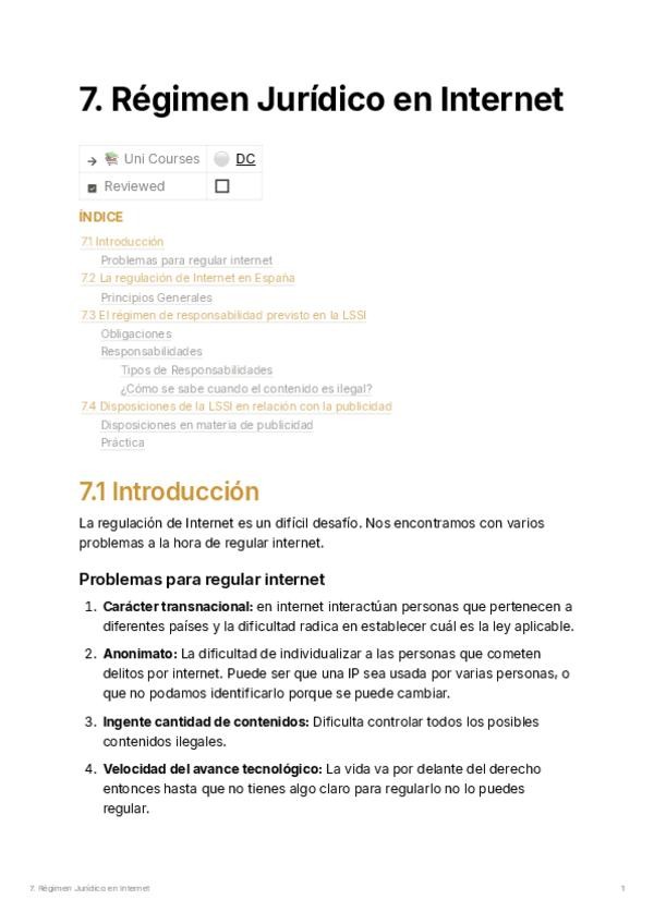 Resumen de la LSSI (Ley 34/2002) y los retos de regular la red. Explico la responsabilidad de los intermediarios (Google, proveedores de acceso, redes sociales) , la regulación del spam, las cookies y el anonimato en internet. Incluye un caso práctico res