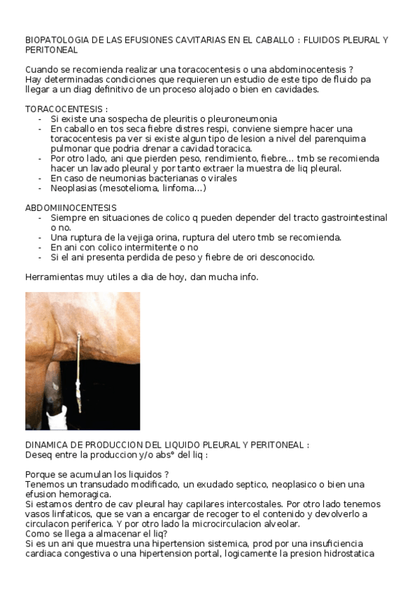 BIOPATOLOGIA DE LAS EFUSIONES CAVITARIAS EN EL CABALLO : FLUIDOS PLEURAL Y PERITONEAL