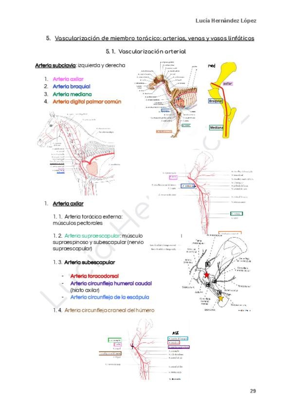 Vascularización e inervación del miembro torácico o anterior.