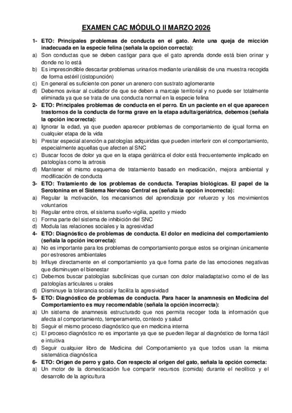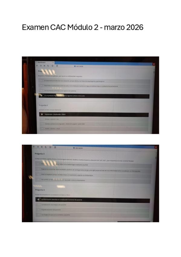 Examen de CAC Módulo II, con respuestas al final en una tabla