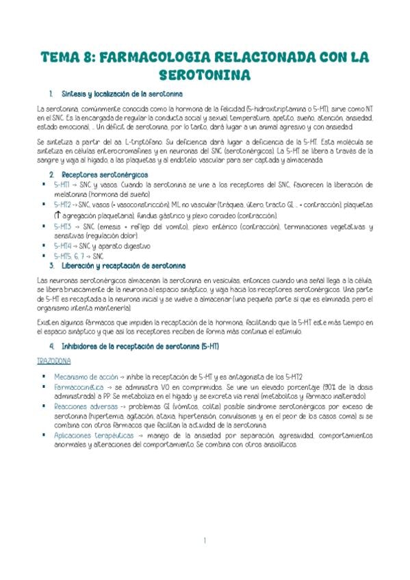 He publicado nuevos apuntes de 2º Bases Farmacológicas y de la Terapéutica: Tema 8: Farmacología relacionada con la serotonina.pdf.pdf