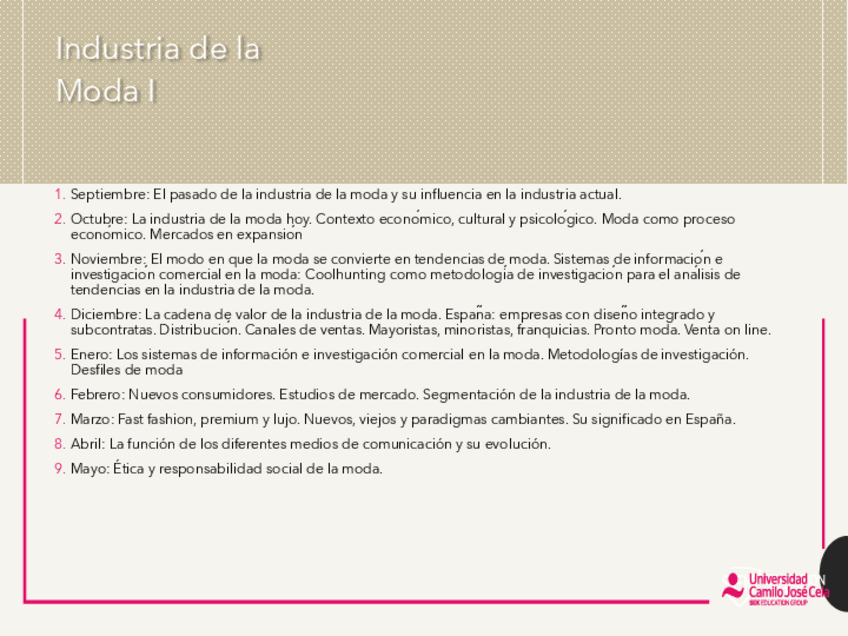 Asignaturas de Grado en Gestión y Comunicación de la Moda (UCJC)