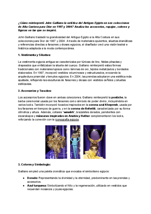 Ejercicio Clase, relacionar Egipto con alguna colección contemporánea con simbología egipcia. John Galliano + Egipto