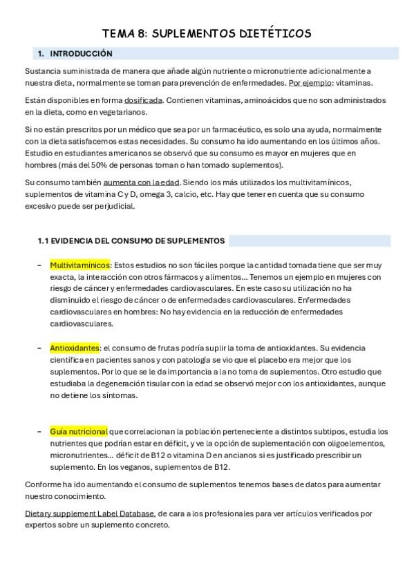 He publicado nuevos apuntes de 1º Nutrición y Dietética: TEMA-8-SUPLEMENTOS-DIETETICOS.pdf