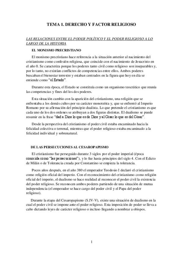 He publicado nuevos apuntes de 4º Derecho Eclesiastico: Temario