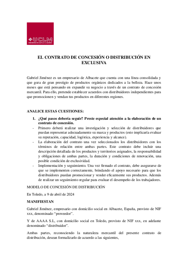 He publicado nuevos apuntes de 4º Derecho Mercantil II: CONCESIAN-O-DISTRIBUCIAN-EN-EXCLUSIVA.odt