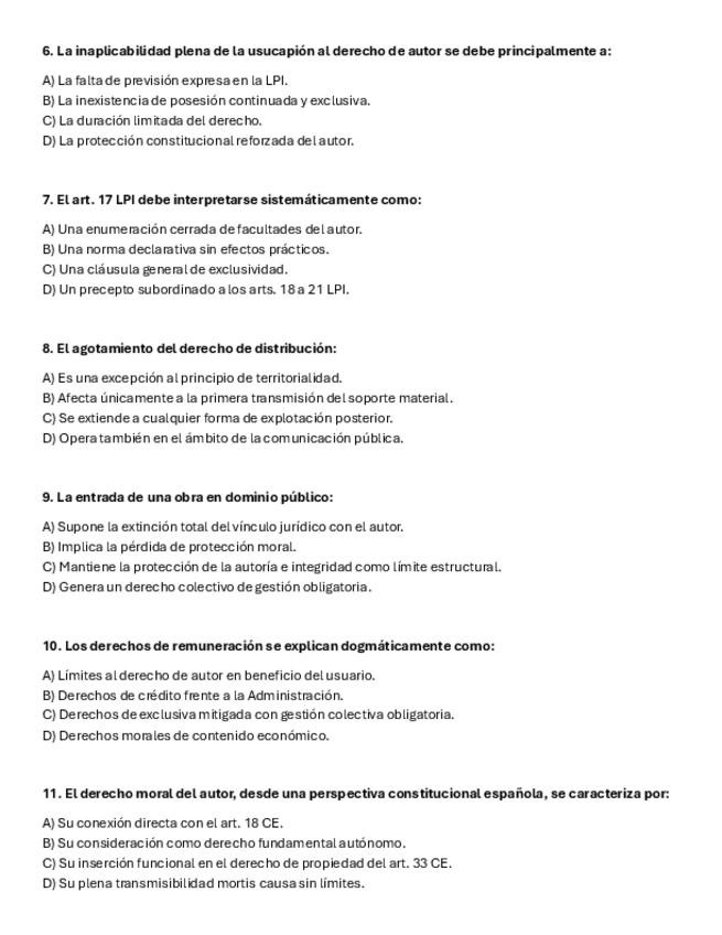 He publicado nuevos examenes de 4º Propiedad Intelectual: PREGUNTAS-TEST-2.-PROPIEDAD-INTELECTUAL.pdf
