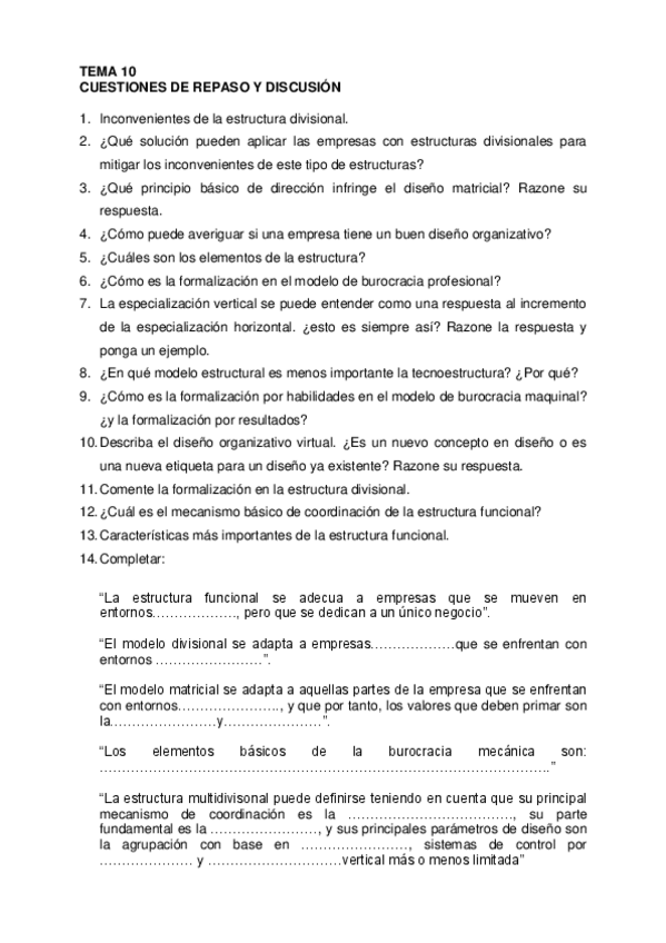 He publicado nuevos ejercicios de 2º Diseño y Comportamiento Organizativo: Preguntas-Tema-10.pdf