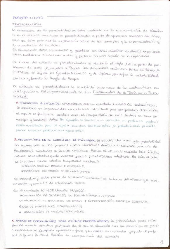 Apuntes del tema 3 (probabilidad) de Didáctica de los números y la estocástica. Curso 1º Educación Primaria de tardes 2025/2026.