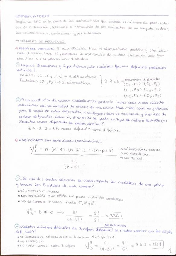 Apuntes del tema 4 (combinatoria) de Didáctica de los números y la estocástica. Curso 1º Educación Primaria de tardes 2025/2026.