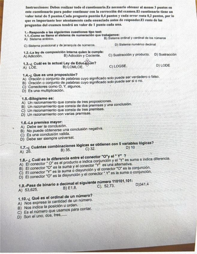 EXAMEN ORDINARIO PENSAMIENTO LÓGICO Y NUMÉRICO