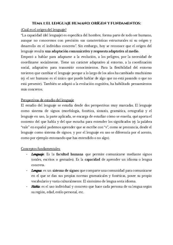 TEMA 1. EL LENGUAJE HUMANO: ORIGEN Y FUNDAMENTOS