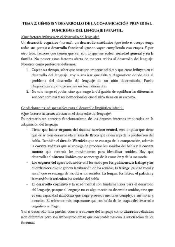 TEMA 2. GÉNESIS Y DESARROLLO DE LA COMUNICACIÓN PREVERBAL. FUNCIONES DEL LENGUAJE INFANTIL.