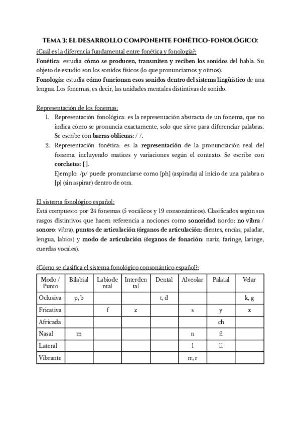 TEMA 3. EL DESARROLLO DEL COMPONENTE FONÉTICO-FONOLÓGICO