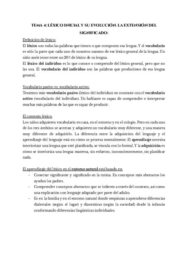 TEMA 4. LÉXICO INICIAL Y SU EVOLUCIÓN. LA EXTENSIÓN DEL SIGNIFICADO