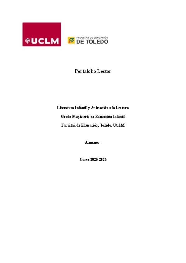 He publicado nuevos trabajos de 4º Literatura infantil y animación a la lectura: Portafolio-Lector-Literatura-Bloque-I.pdf