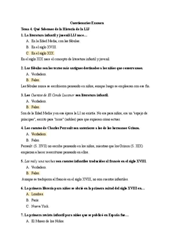 He publicado nuevos apuntes de 4º Literatura infantil y animación a la lectura: Cuestionarios-Examen-T.-4-y-5.pdf