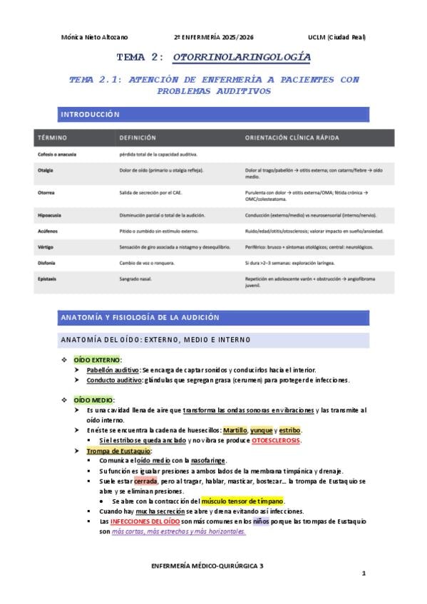 He publicado nuevos apuntes de 2º Enfermería Medico-Quirúrgica 3: TEMA 2: Otorrinolaringología