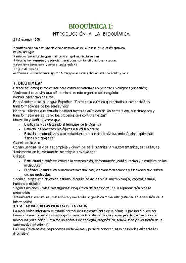 Resumen del primer tema de la asignatura de bioquímica UCLM curso 2025/2026