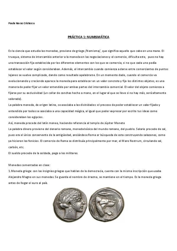 Las dos prácticas, la de NUMISMÁTICA y la de CERÁMICAS