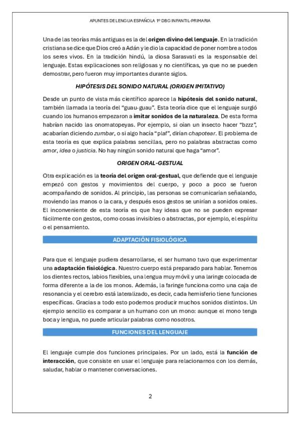 Apuntes completos de la asignatura de Lengua Española de 1º DEL DBG EI-EP