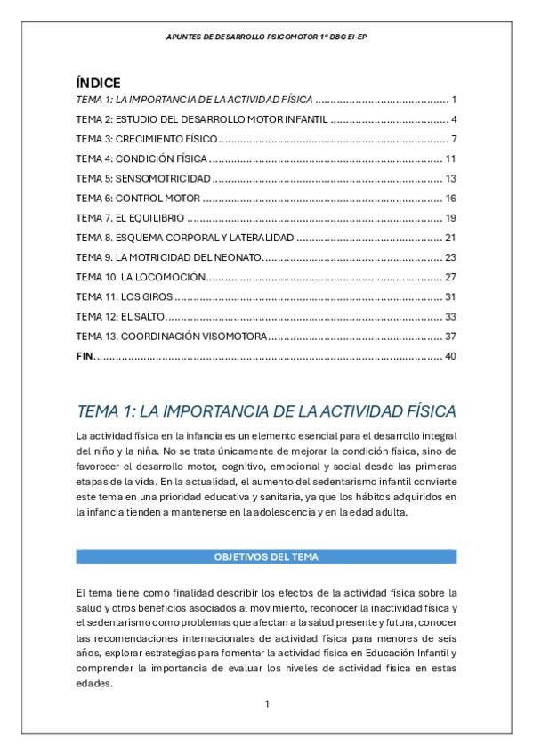 Apuntes completos de la asignatura Desarrollo Psicomotor de 1º del DBG EI-EP