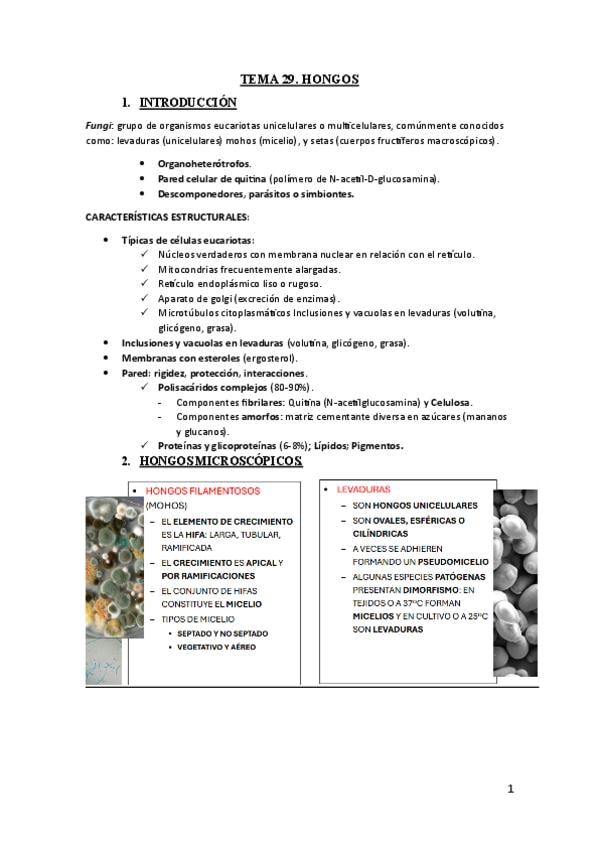 Apuntes tema hongos microbiología. Nacho 2ºF