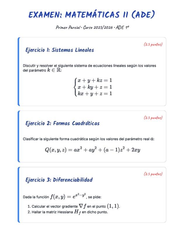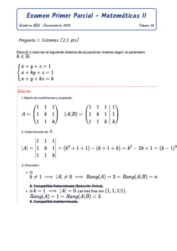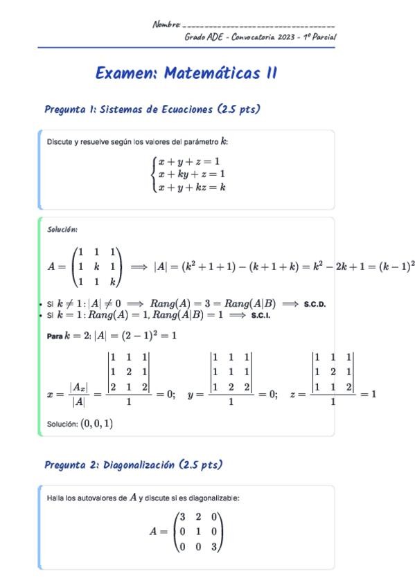 Examen Matemáticas II - PARCIAL 1