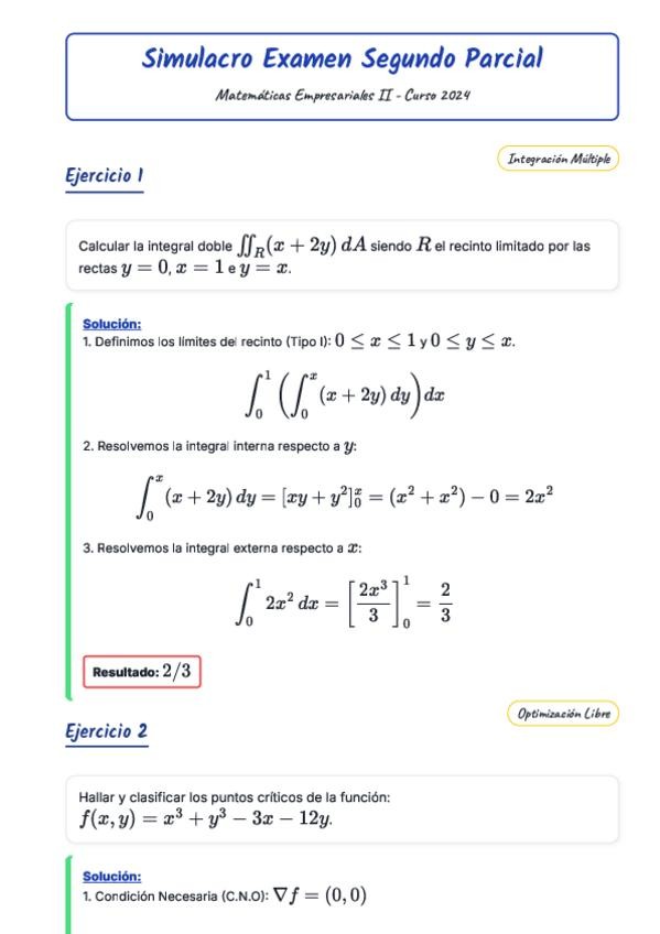 He publicado nuevos apuntes de 1º Matemáticas empresariales II: Examen Matemáticas II - Segundo Parcial