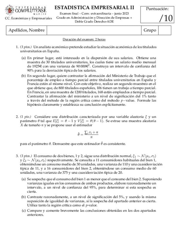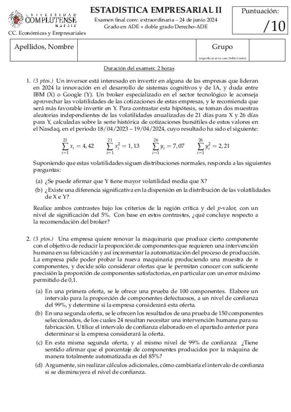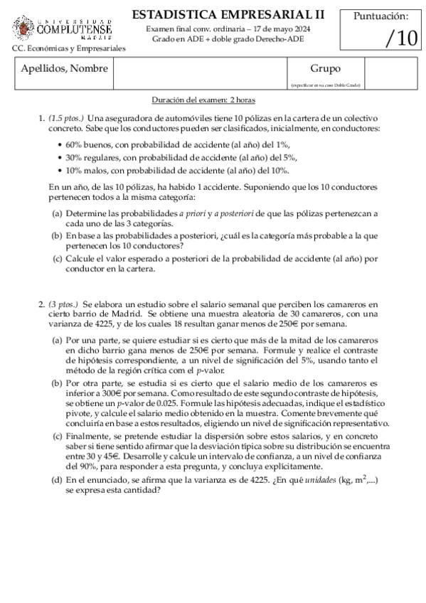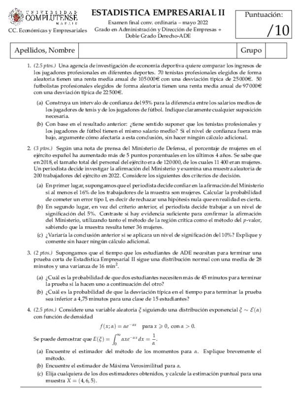 He publicado nuevos examenes de 2º Estadística Empresarial Ii: EXÁMENES FINALES