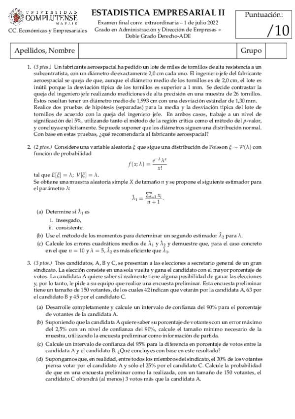 He publicado nuevos examenes de 2º Estadística Empresarial Ii: PARCIALES ESTADISTICA II 2026