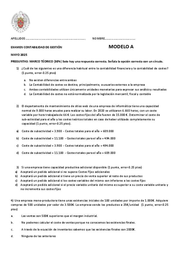 He publicado nuevos examenes de 2º Contabilidad de Gestión: MIDTERM 1