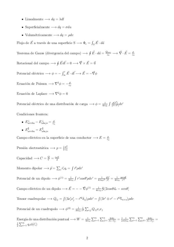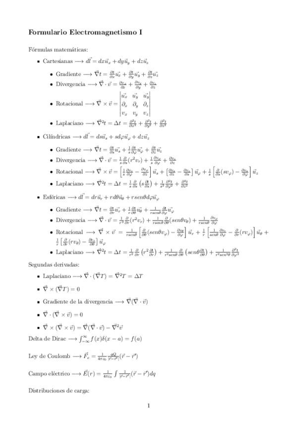 Formulario de todo el temario de electromagnetismo I en latex