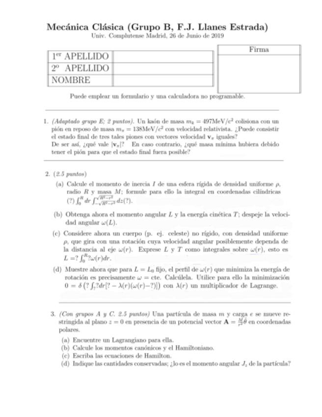 Examen Resuelto Mecánica Clásica Junio 2019