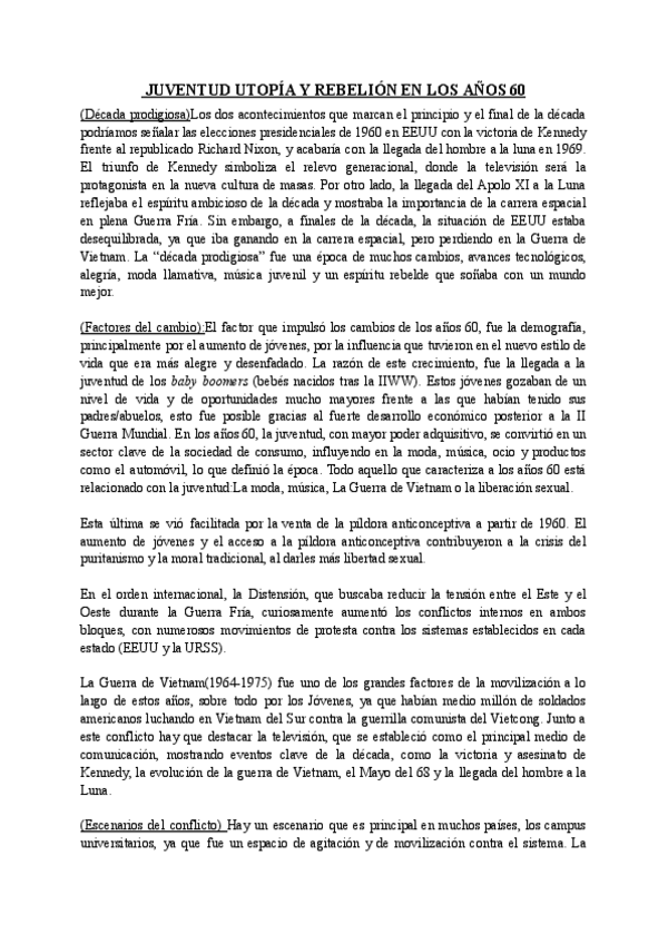 TEMA 2- JUVENTUD UTOPÍA Y REBELIÓN DE LOS AÑOS 60