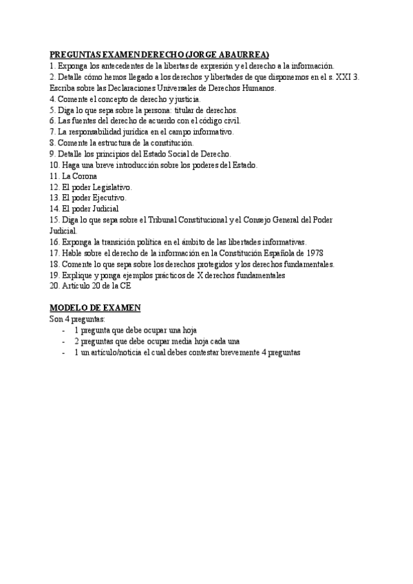 Preguntas del examen de derecho + Modelo del examen