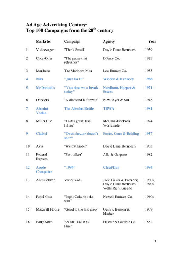 He publicado nuevos apuntes de 1º Estructura y Empresa de la Publicidad: Ad Age Advertising Century.pdf
