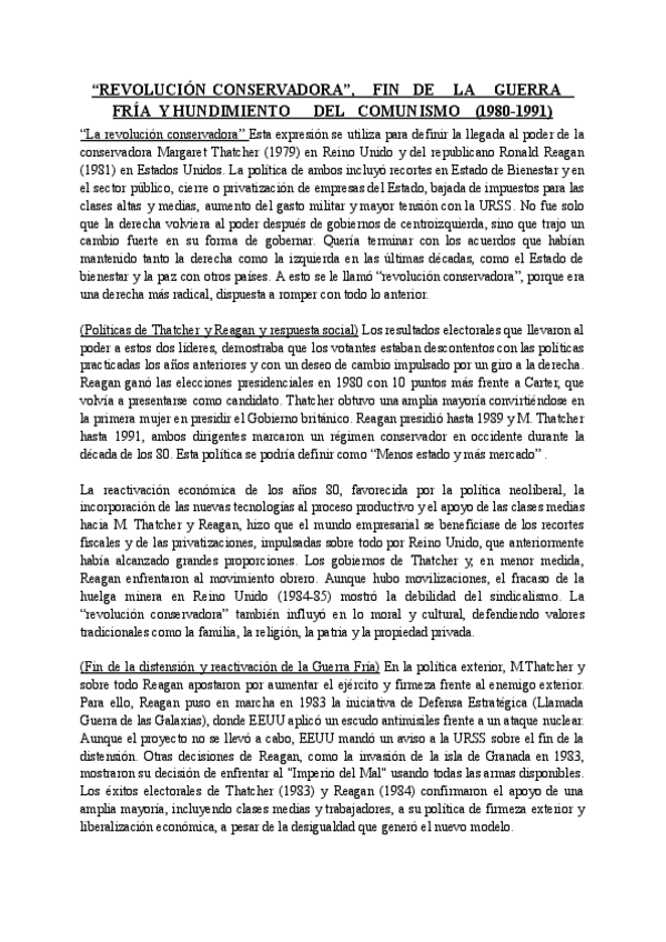 TEMA 4- REVOLUCIÓN CONSERVADORA, FIN DE LA GUERRA FRÍA Y HUNDIMIENTO DEL COMUNISMO