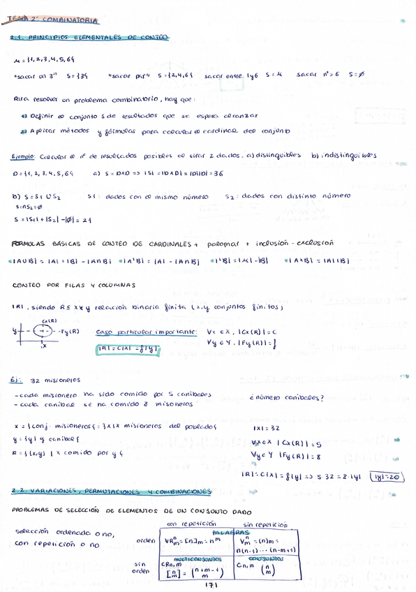 Resumen de la teoría de combinatoria, tratando de manera fácil de entender y muy resumida toda lo que necesitas saber para los ejercicios.