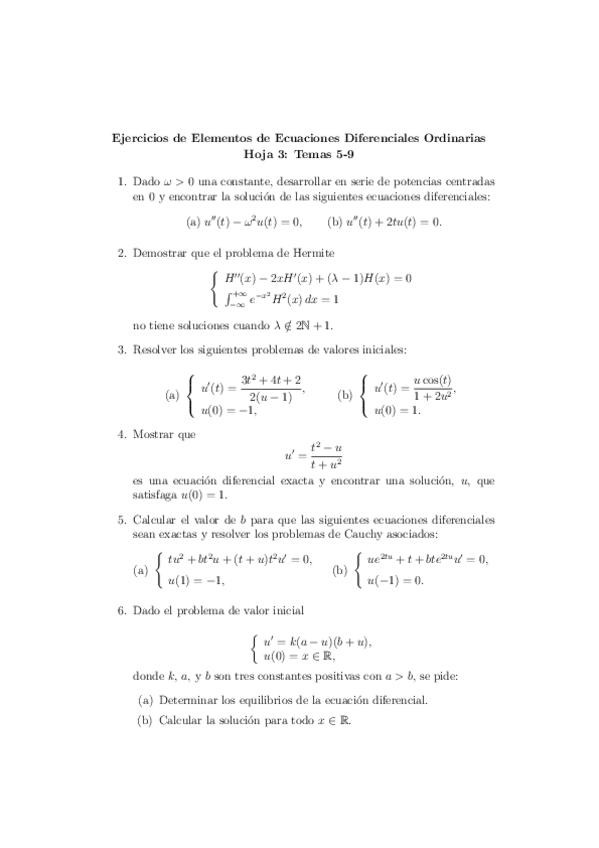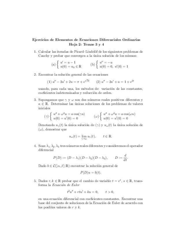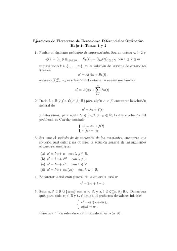 He publicado nuevos ejercicios de 2º Elementos de Ecuaciones Diferenciales Ordinarias: Enunciados hojas ejercicios