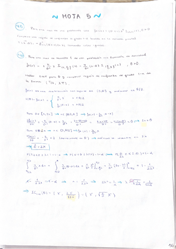 He publicado nuevos ejercicios de 3º Inferencia Estadística: Hoja 5
