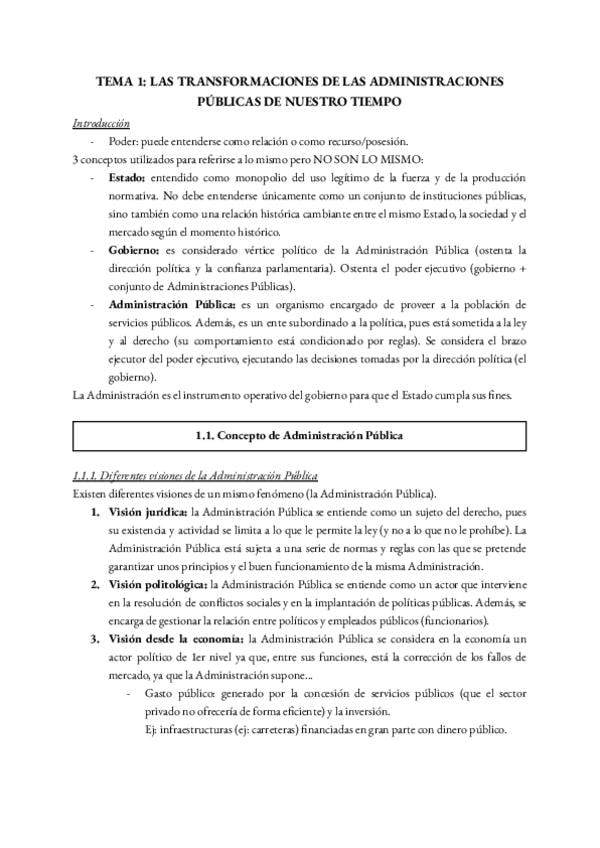 Apuntes redactados del tema 1 de TEORÍA DE LA ADMINISTRACIÓN PÚBLICA.