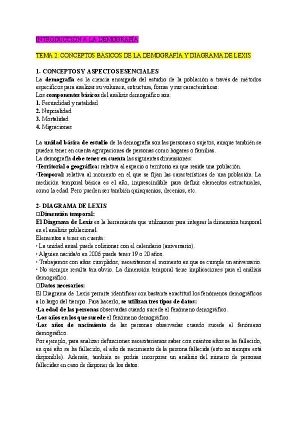 Introducción a la demografía; tema 2: Conceptos básicos de la demografía y diagrama de Lexis