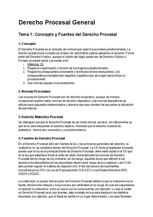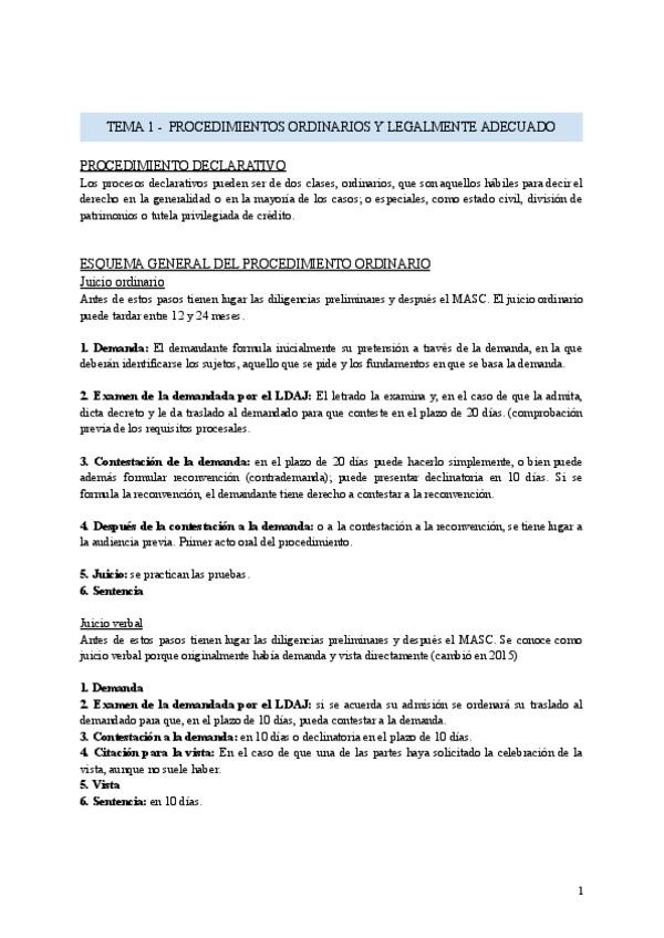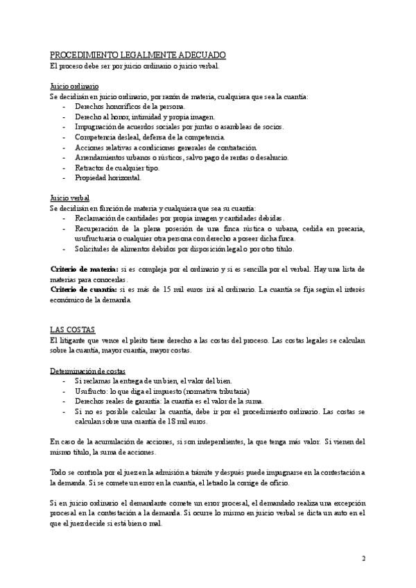 Apuntes de clase con la profesora Maite Padura, con todos los tratamientos procesales.