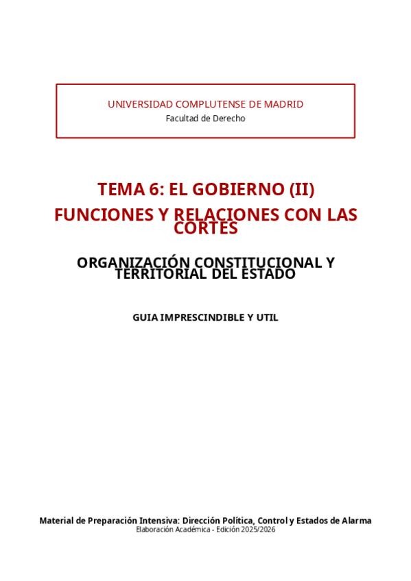 He publicado nuevos apuntes de 1º Derecho Constitucional: Organización Constitucional y Territorial del Estado: TEMA-6-EL-GOBIERNO-II-FUNCIONES-Y-RELACIONES-CON-LAS-CORTES-GUIA-IMPRESCINDIBLE-Y-UTIL.pdf