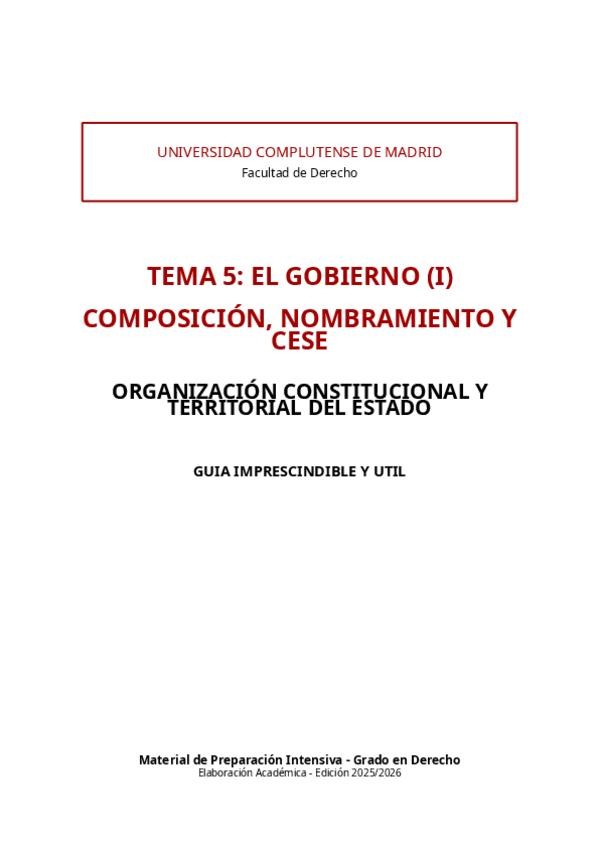 He publicado nuevos apuntes de 1º Derecho Constitucional: Organización Constitucional y Territorial del Estado: TEMA-5-EL-GOBIERNO-I-COMPOSICION-NOMBRAMIENTO-Y-CESE-GUIA-IMPRESCINDIBLE-Y-UTIL.pdf