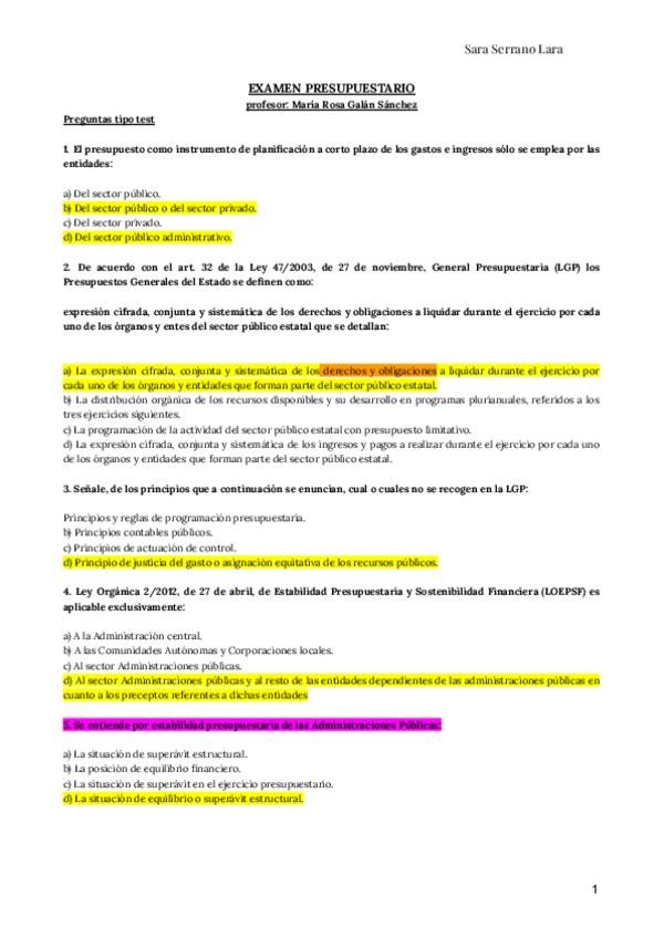 Examen presupuestario 24/25 . Prof: María Rosa Galán. Repitió examen tanto en la ordinaria como en la extraordinaria. Las preguntas en morado son las que entraron en el examen. cuidado con las palabras "correcta/exacta" porque en el examen las cambia.