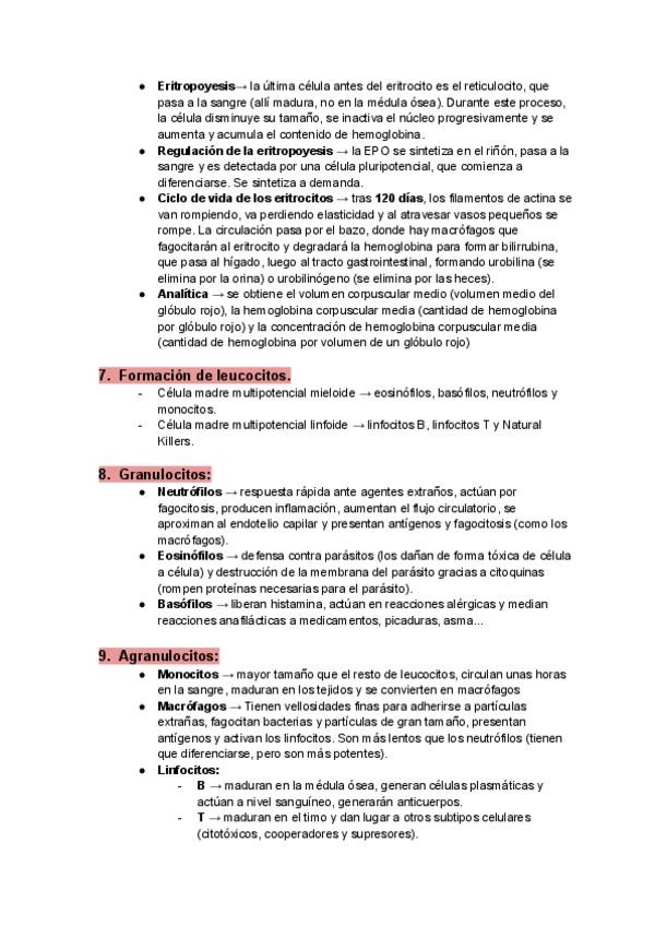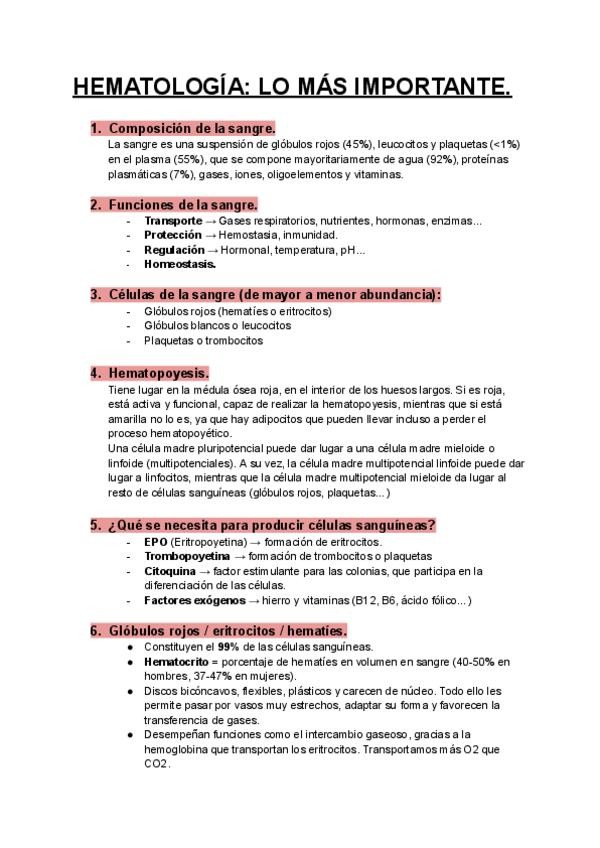 Esquema resumen completo con la información más importante para estudiar el tema de hematología.